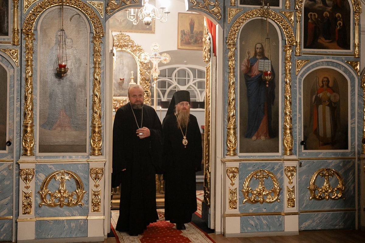 Гости Жировичской обители приняли участие в вечернем богослужении, затем всех участников пригласили разделить трапезу в Минской духовной семинарии.